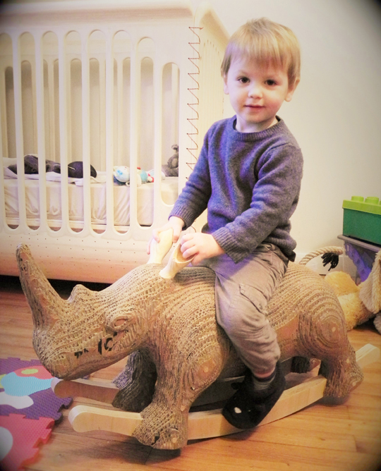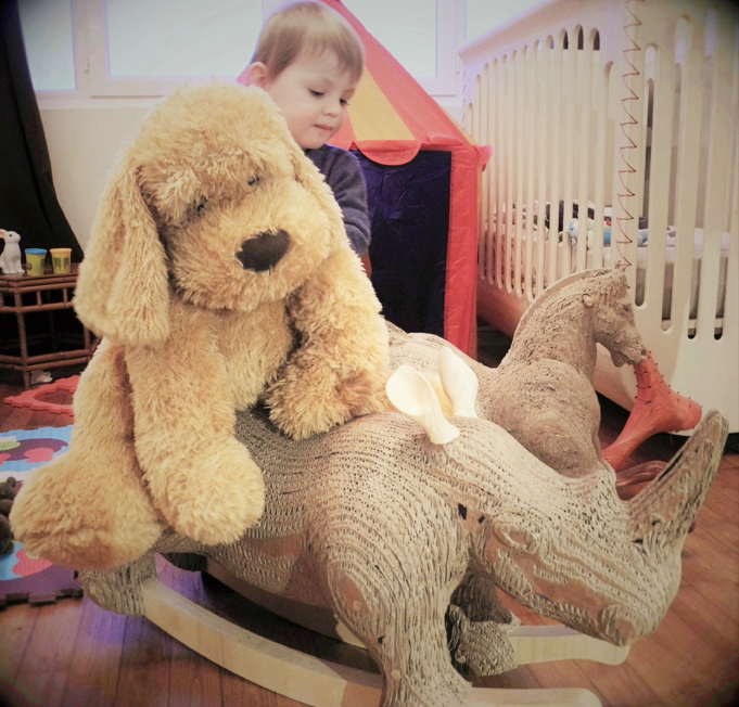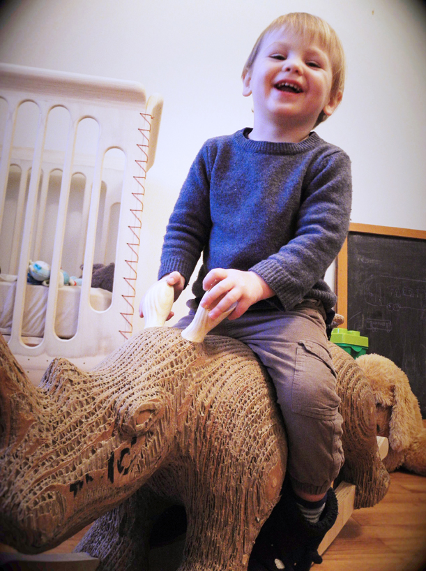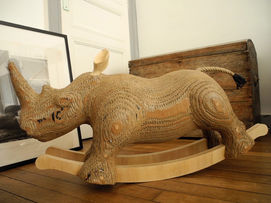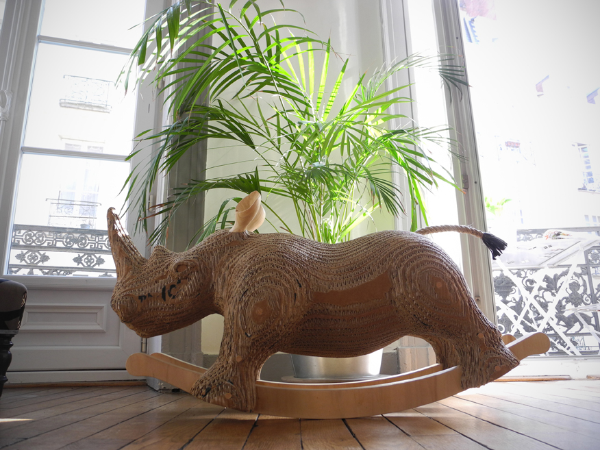 Carlos est un animal de compagnie réalisé en carton de récupération.