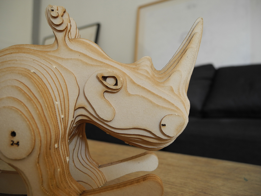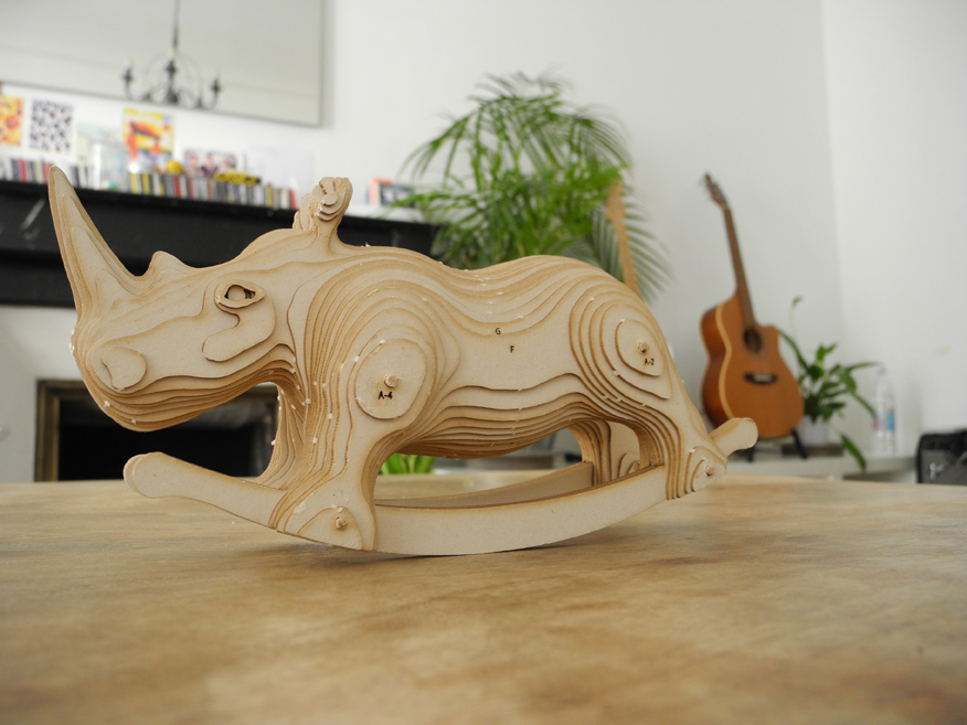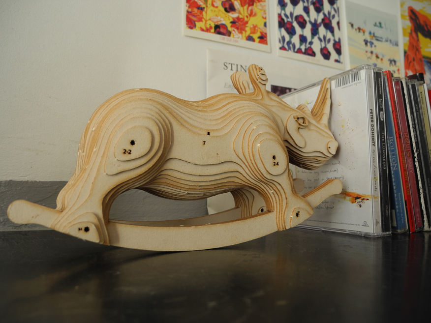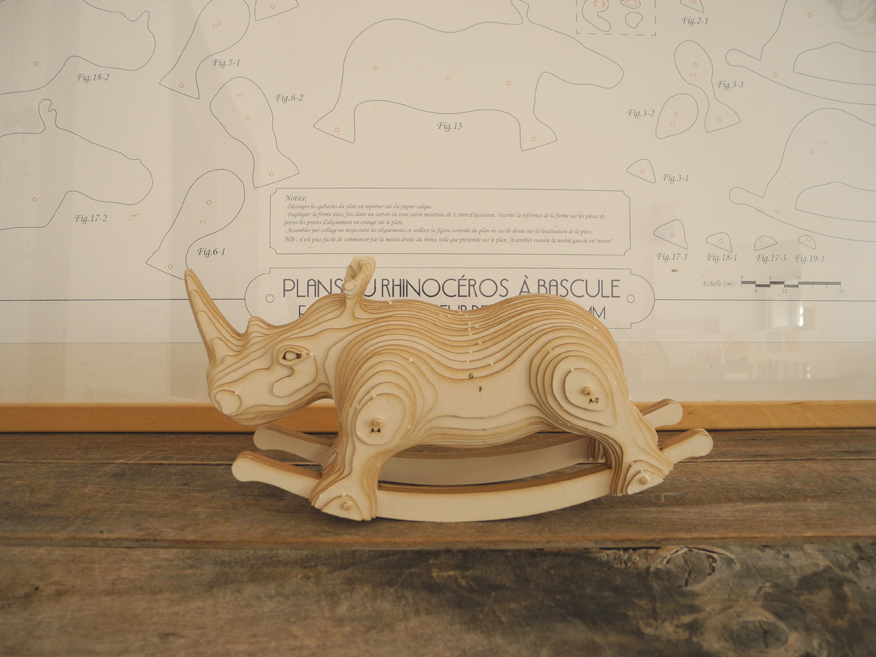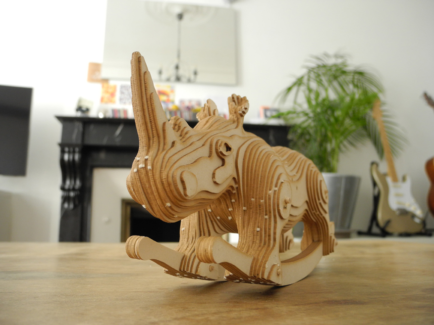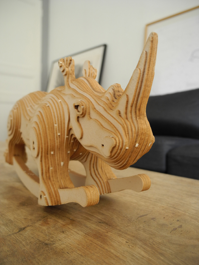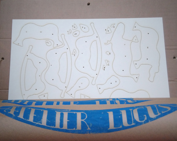 Le petit frère de Carlos, vendu en maquette à assembler soi-même. Les pièces sont prédécoupées au laser dans du carton bois et sont livrées avec une notice de montage et des tiges de bois. La quasi totalité des pièces tiennent par compression , il vous faudra simplement coller les plus petites pièces ( les yeux et les oreilles) à l’aide d’un bâton de colle classique.