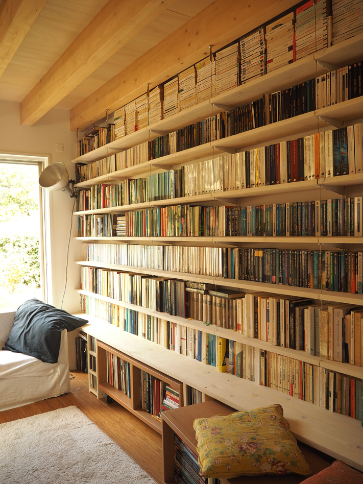 Pour ce projet, les clients cherchaient à disposer d’une bibliothèque capable de contenir leur collection de livres, BD et de cd. Nous avons cherché à optimiser les surfaces de rangement et à les rendre modulables pour s’adapter au mieux à la hauteur des différents types d’éléments (grands formats, poches, bandes dessinées, cd, …)
